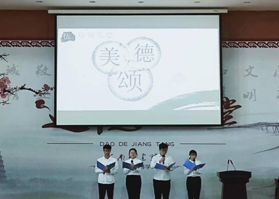 本期道德讲堂共分“三省吾身,崇尚美德,经典诵读,青春榜样,诗颂美德,影视展播,才艺展示,道德感悟和送吉祥”等九个环节。