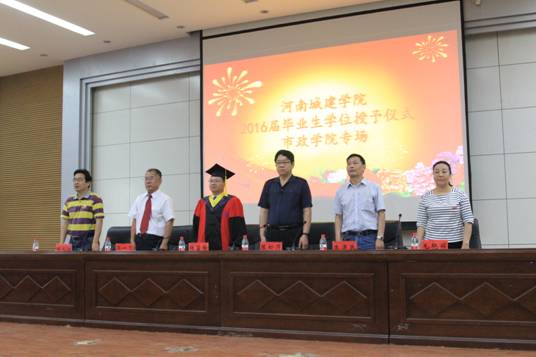 在庄严雄壮的国歌声里,典礼拉开帷幕。副书记朱泮民教授宣读了关于表彰2016届省级优秀应届毕业生的决定;副经理毛艳丽副教授宣读了关于表彰2016届校级优秀应届毕业生的决定;副经理田长勋副教授宣读了关于授予方晓敏等449名员工学士学位的决定。