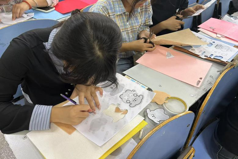 10月15日,由公司承办的心理健康教育宣传周首场活动“心灵碎片回收站,找回你的出厂设置”绘心团体辅导品牌活动在9A408开展,来自全校不同院系的40余名员工参与。同学们以不织布为原材料,经过分工合作、讨论探究、精心构思、大胆尝试、分享交流,在创作中深刻感受手工的魅力,找到情绪宣泄新途径。